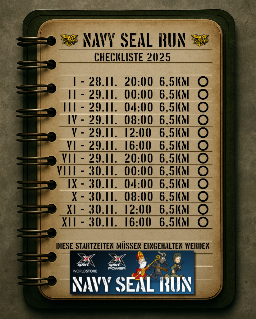 Wichtig: Start ist immer zur vollen 4. Stunde ... nicht davor nicht danach. Wer die Startzeit nicht schafft scheidet aus. Unten die Startzeiten mit Checkliste.