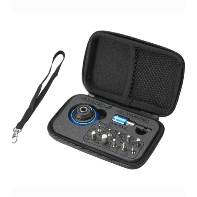 Das Set umfasst insgesamt 10 hochwertige Bits und eine praktische Verlängerung, sodass du für die wichtigsten Schraubarbeiten bestens ausgestattet bist. Von Innensechskant über Torx bis hin zu Kreuz- und Schlitzschrauben deckt das WK3 die gängigsten Anwendungen am Fahrrad ab.